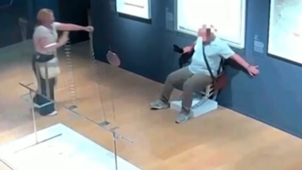According to museum officials, the woman first squatted near the chair, seemingly careful not to make contact. However, the man went further — sitting on the artwork and then stumbling backwards, collapsing the delicate frame beneath him. The pair then quickly fled the room without alerting any staff members.