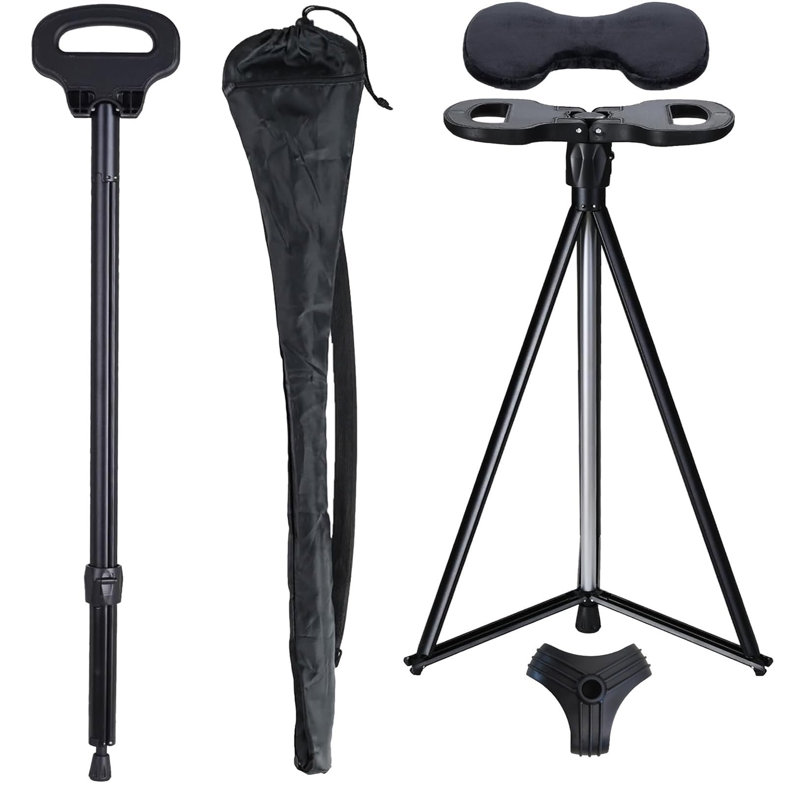 2-in-1 Portable Walking Stick & Folding Tripod Stool