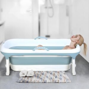 This is a large, portable foldable bathtub designed for versatile use by adults and children. Its innovative design allows for easy storage and transport, making it a perfect solution for homes with limited space, or for use while traveling or camping.