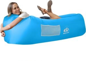This Inflatable Sun Lounger, is a portable, leak-proof, and waterproof air sofa perfect for the beach, backyard, camping, and festivals. It features a unique patented pillow-shaped headrest that provides comfortable support for your neck and upper back.